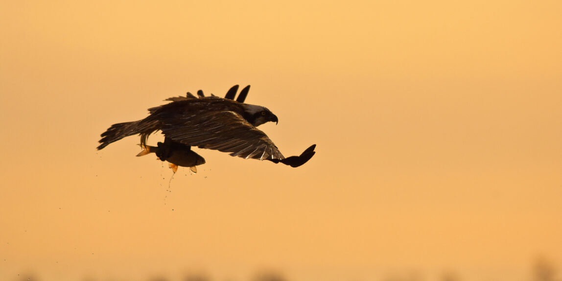 As the sun casts its first golden streaks across the horizon, the osprey makes its silent entrance. It is early April, just past eight, and in a swift, effortless glide it hunts. A lone fish stands no chance against this master of the skies. In mere seconds, the moment is gone, leaving only the memory of its passage.